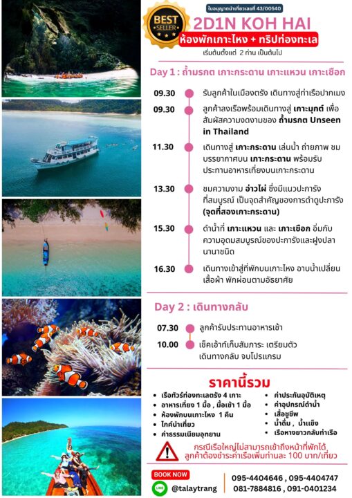 ค่าเรือทัวร์นำเที่ยวทะเลตรัง