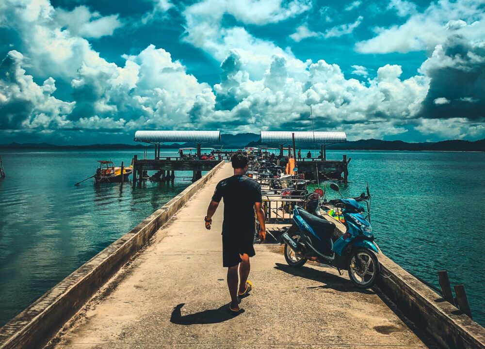 หรือพูดให้เข้าใจง่ายๆ คือเส้นทางไปทะเลตรัง นั่นเอง โดยเส้นทางนี้ จะมีระยะทางประมาณ 65 กิโลเมตร จากสนามบินตรัง จะมีรถวิ่งตลอดทั้งวัน มีร้านอาหาร มีที่พัก เมื่อถึงหาดปากเมง ให้เลี้ยวซ้าย ขับรถเลาะทะเลไปเรื่อยๆ (ทะเลจะอยู่ขวามือ) จะผ่าน อนันตราสิเกาตรัง หาดฉางหลาง หาดเจ้าไหม ผ่านทางเข้าหาดหยงหลิง และขับตรงไปเรื่อยๆ ก็จะเจอสามแยกให้เลี้ยวขวา เข้าท่าเรือควนตุ้งกู