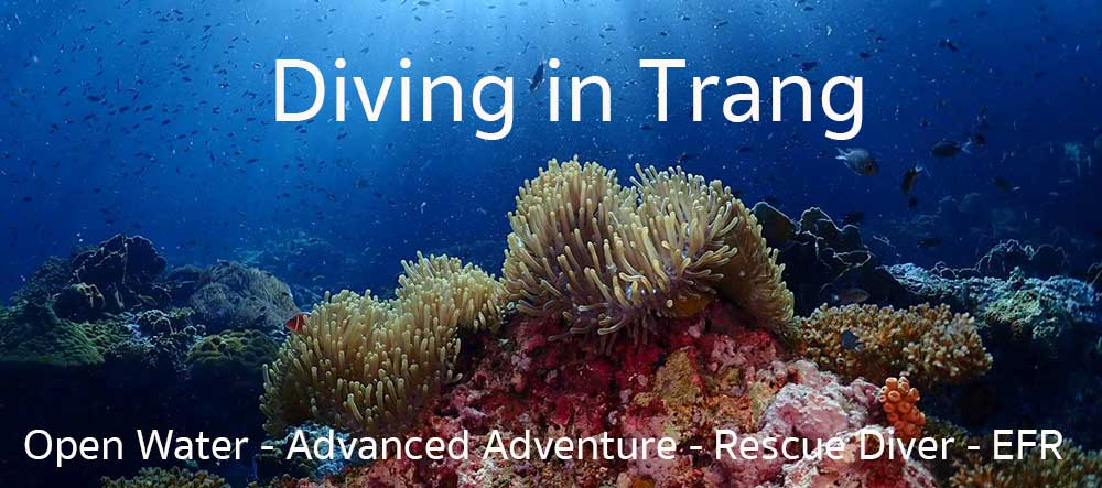 ยืนดีต้อนรับสู่การดำน้ำที่ “ทะเลตรัง” เราเป็นศูนย์เรียนดำน้ำที่มากไปด้วยประสบการณ์ของผู้สอน จังหวัดตรังซึ่งมีทะเลที่สวยงาม อุดมไปด้วยปะการัง ปลามากมายหลายชนิด เราจึงมีบริการเรียนดำน้ำ ทริปดำน้ำอีกมากมาย ท่านใดสนใจที่จะท่องโลกใต้น้ำ เราจึงเป็นมืออาชีพด้านดำน้ำ